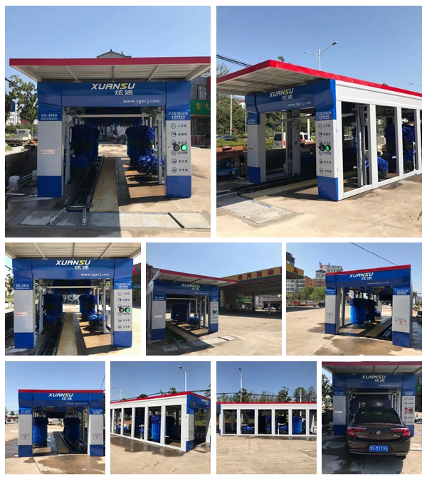 河南信陽潢川迎賓加油站連續式隧道9刷電腦洗車機安裝完畢調試現場拍攝