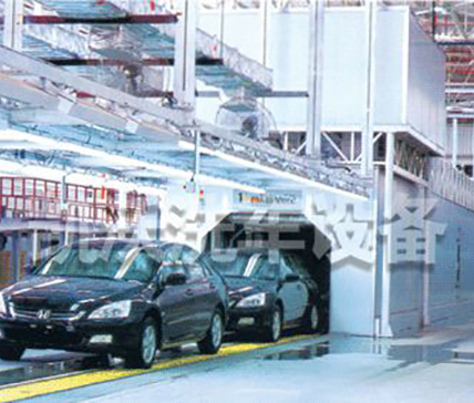 本方案采用一臺凱沃TP-8000D型汽車生產線專用淋雨系統(用來試驗整車封閉部位的密封性和防雨性。如:檔風窗玻璃.行李箱.組合燈等)為產品技術標準提供引用依據。它主要由操作工作臺、房體、板鏈式輸送線、噴淋系統、淋雨控制系統、風干系統組成。及一臺凱沃牌JH-10型罐式污水凈化器(污水回用系統)組合成全套QCT476—2007客車防雨密封性試驗驗。該汽車生產線專用淋雨系統通過電控(日本人三菱PLC可編程控制器)系統對整套設備進行自動化控制運行:既可單臺項目操作使用,又能組合連續配套使用。可實現對汽車的淋雨實驗快捷的連續測試、污水處理回用等整套作業方案。