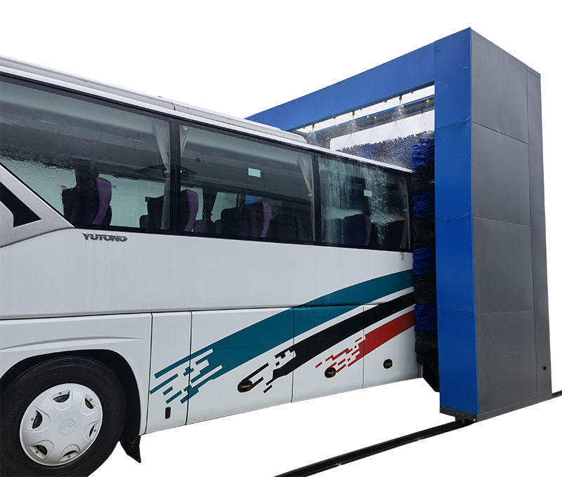 巴士洗車機的產品特點:牽引系統自動行走、自動返程、自動停止控制系統;側刷自動張開和收縮,正反轉自動切換控制系統;橫刷自動升降、正反轉自動切換控制系統;.噴射系統自動噴射液體;故障報警、自動停機控制系統。
